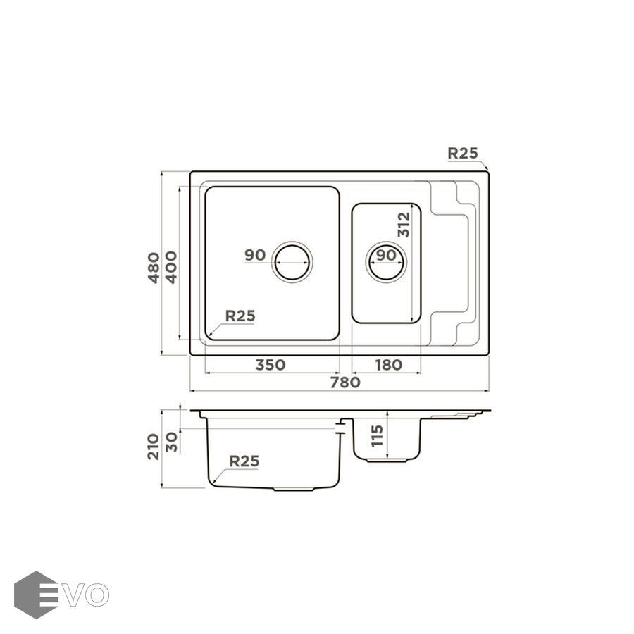 - Размер мойки: 780x480