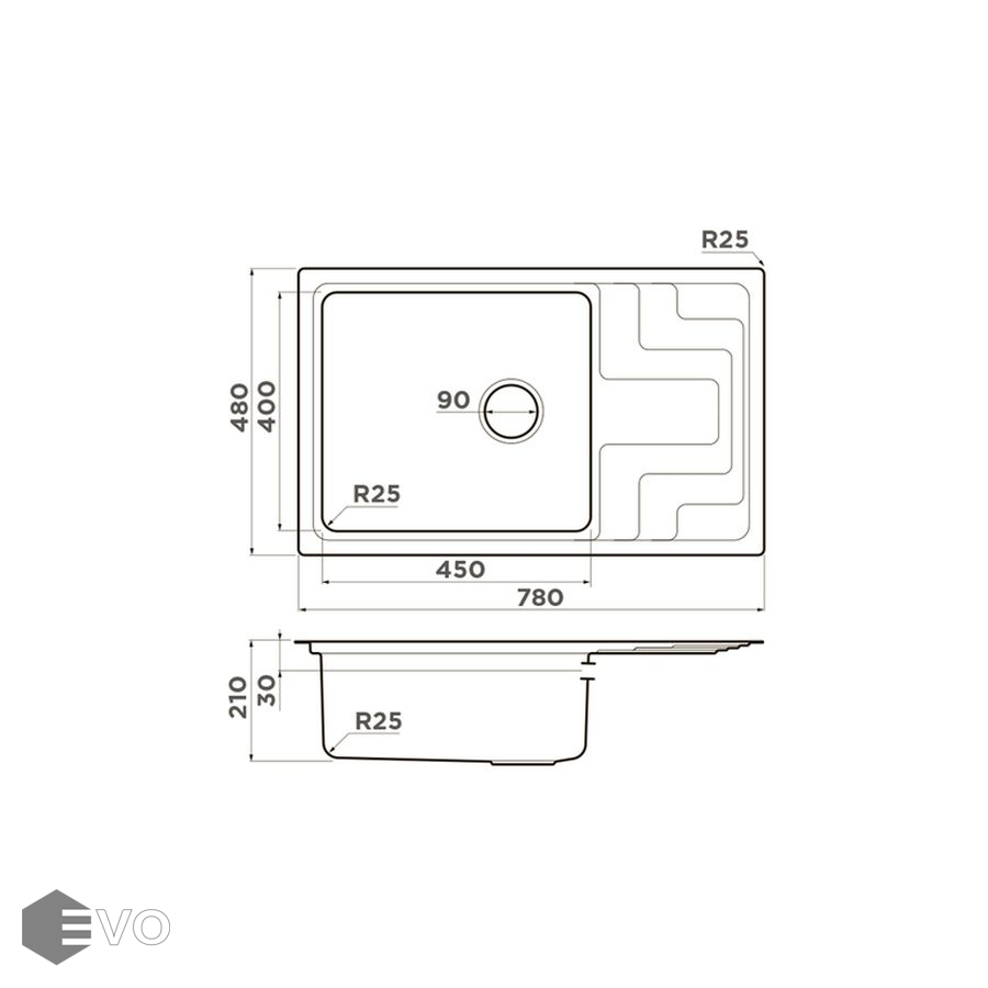 - Размер мойки: 780x480