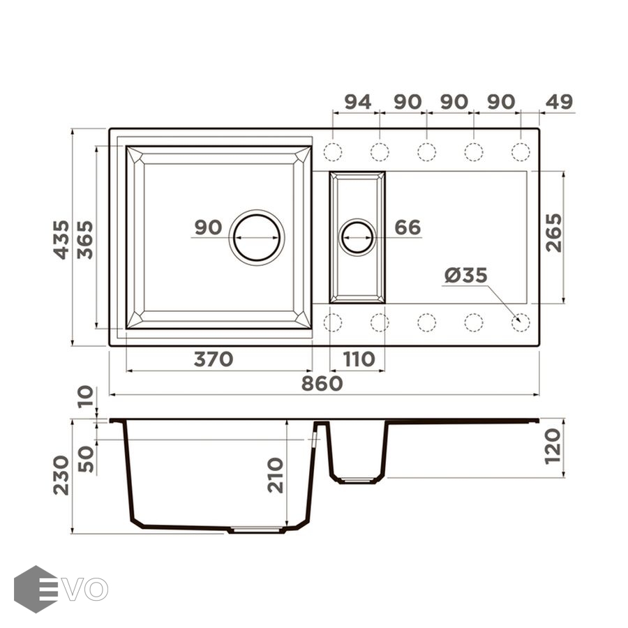 • Размер мойки: 860х435