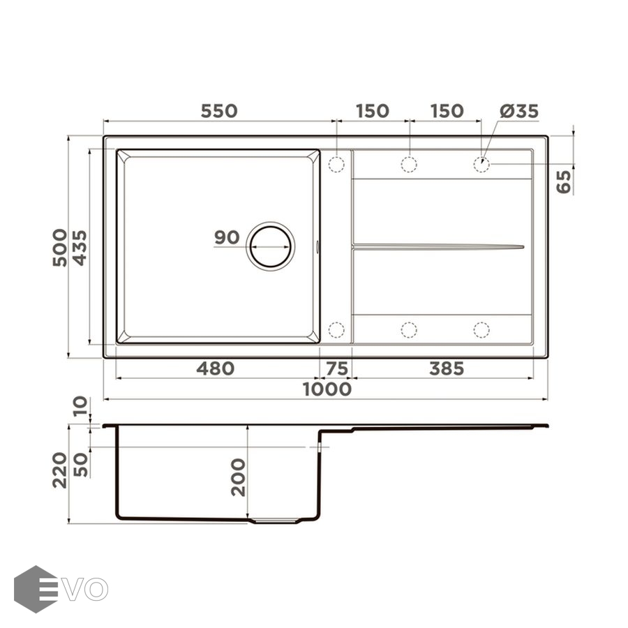- Размер мойки: 1000x500