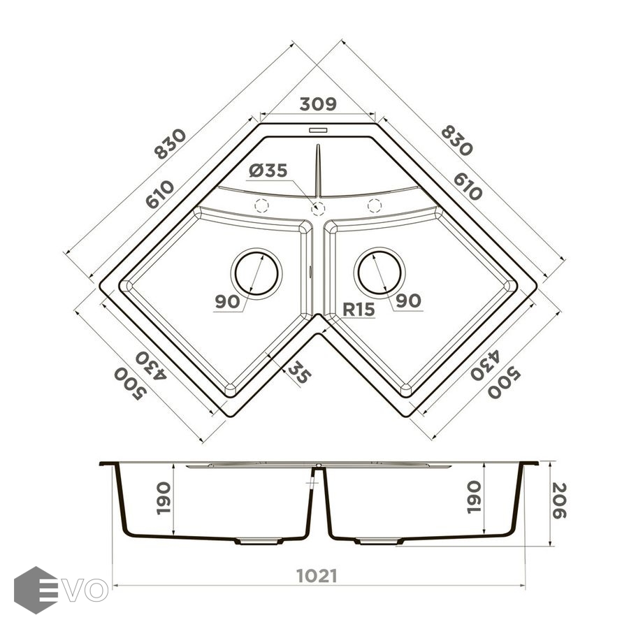 | Особенности: | дополнительная чаша отверстие под смеситель сливная арматура в комплекте угловая |