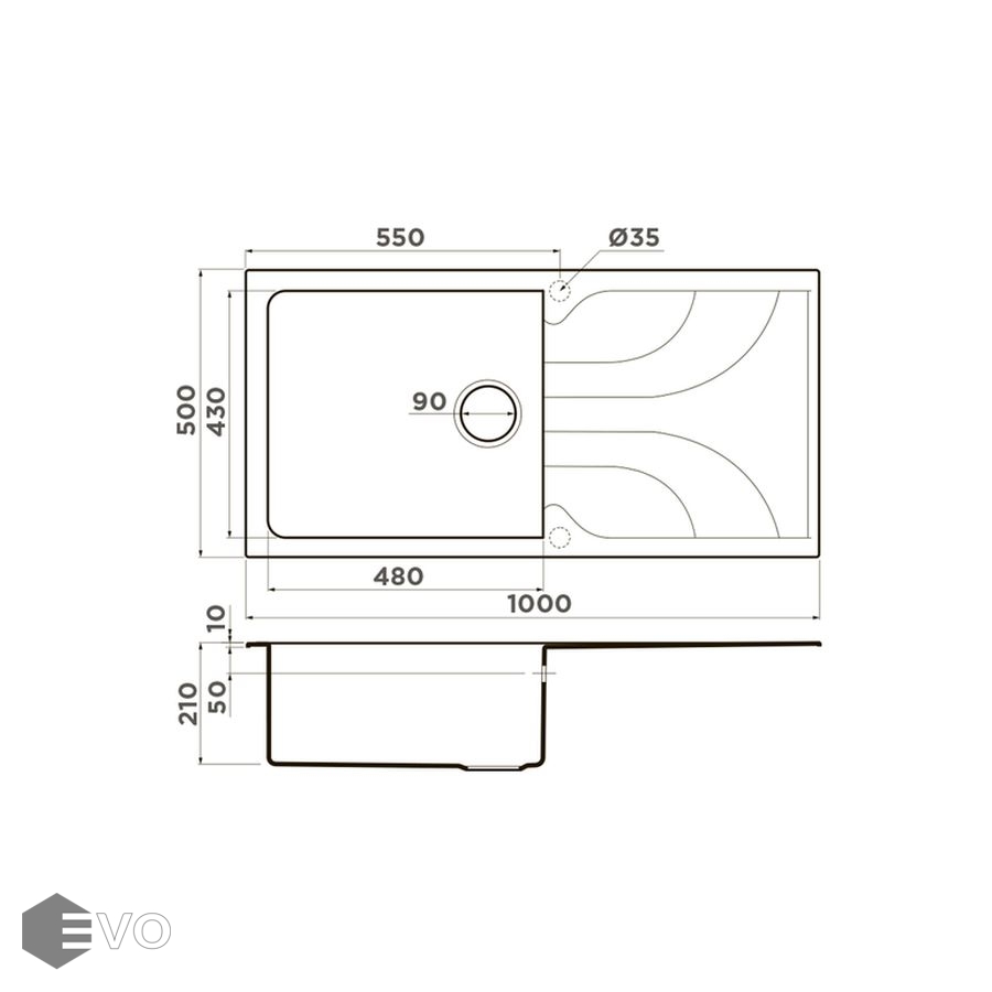 Стильная мойка из TETOGRANIT имеет функциональное крыло с выпуклыми лучиками, которые предназначены для легкого стекания воды в чашу.