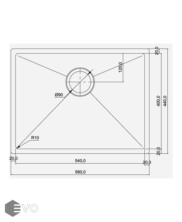 - Радиус внутренних углов чаши: 10 мм (R=10mm)