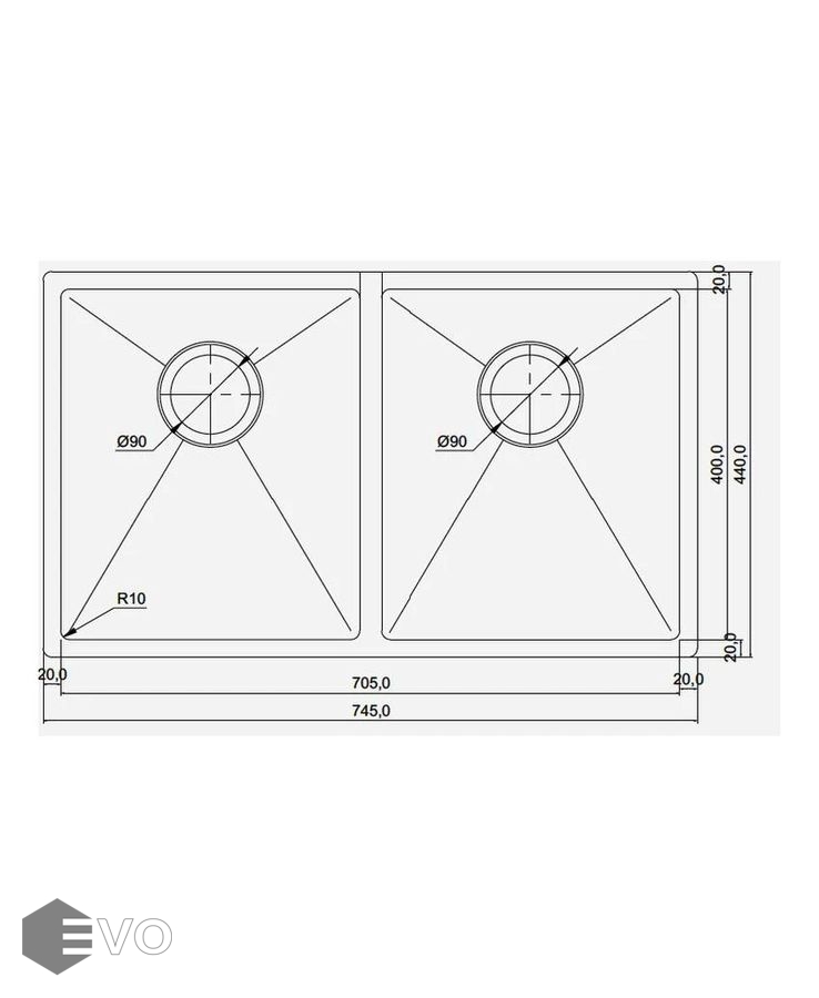 - Размеры мойки: (мм) 745х440х200