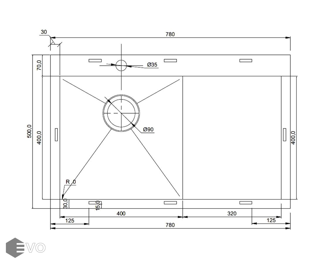 - Длина мойки: 780