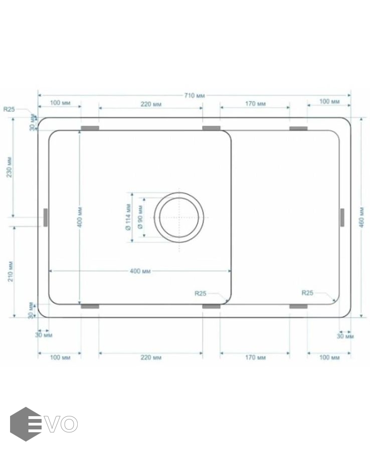 - Мойка кухонная без отверстия под смеситель, с крылом