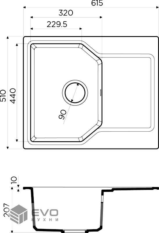 | Размер мойки | 615x510 |