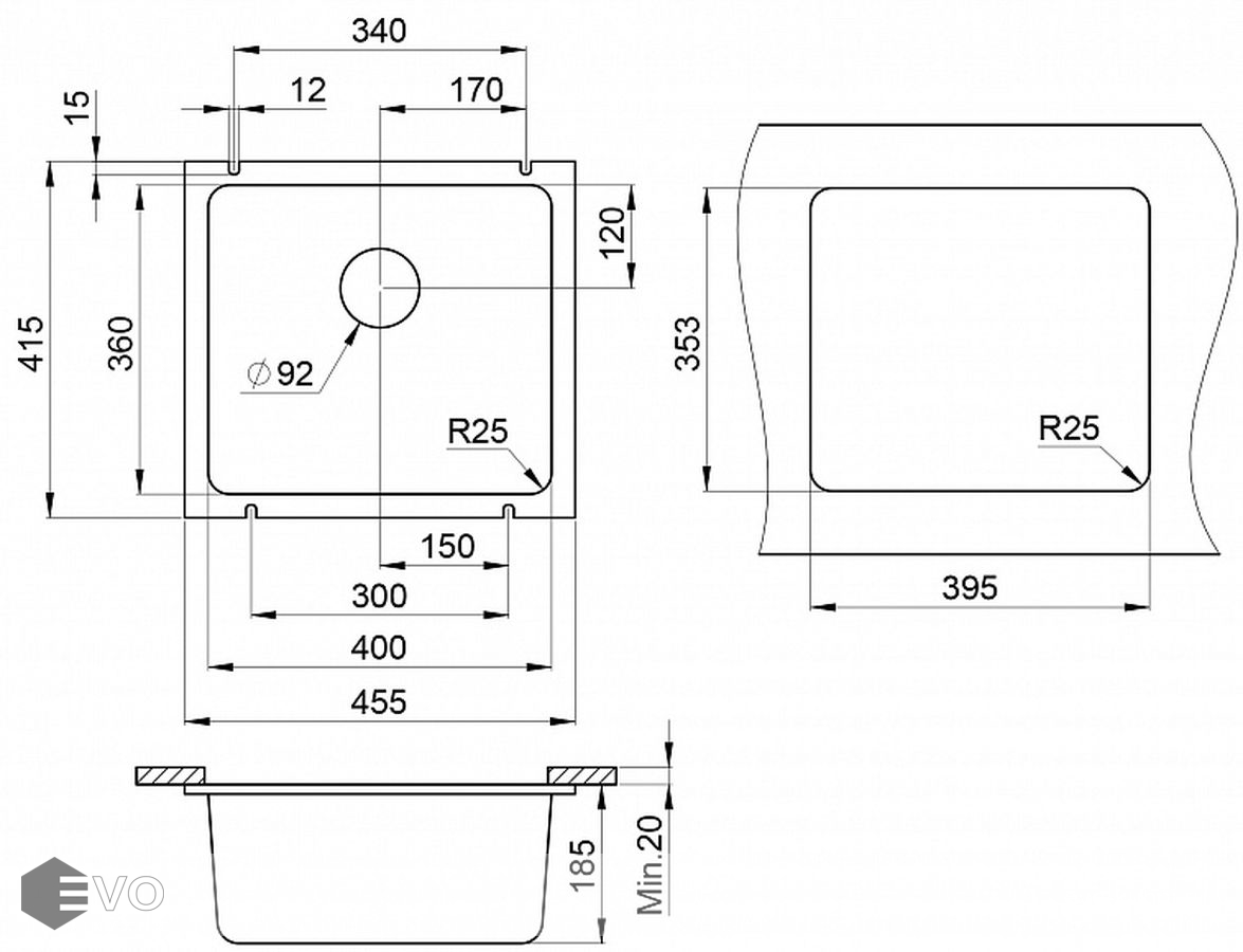 - Глубина чаши, мм 185