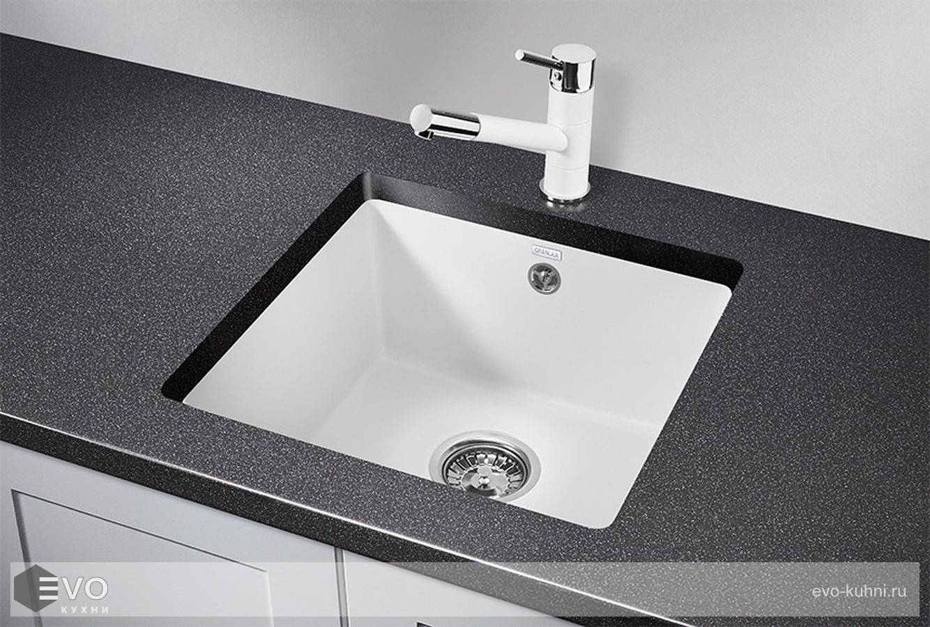 Универсальная мойка квадратной формы, изготовленная из кварцевого материала.