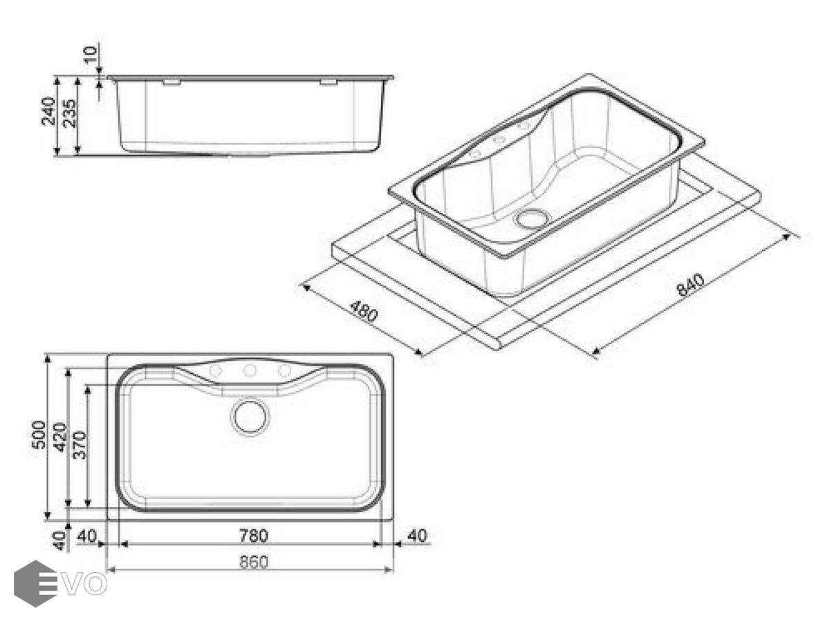 - Размеры выреза в столешнице (мм) 840x480
