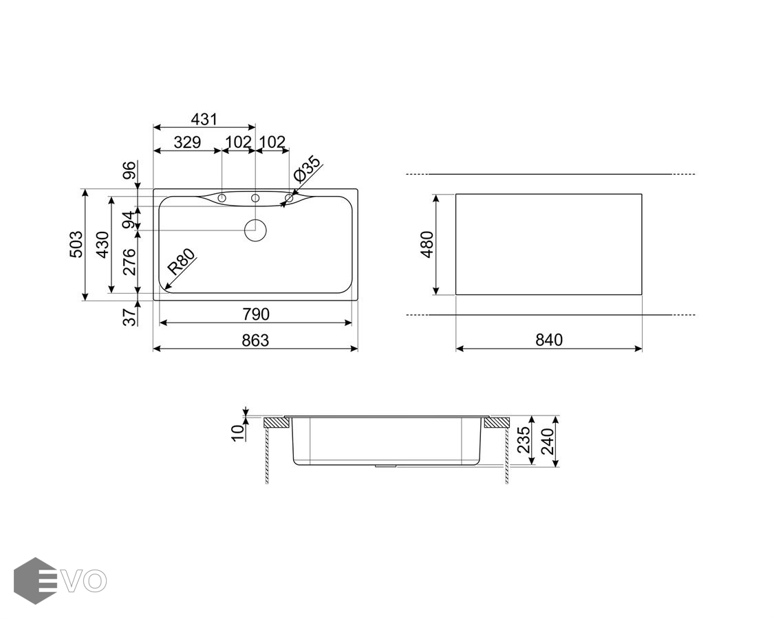 - Размеры выреза в столешнице (мм) 840x480