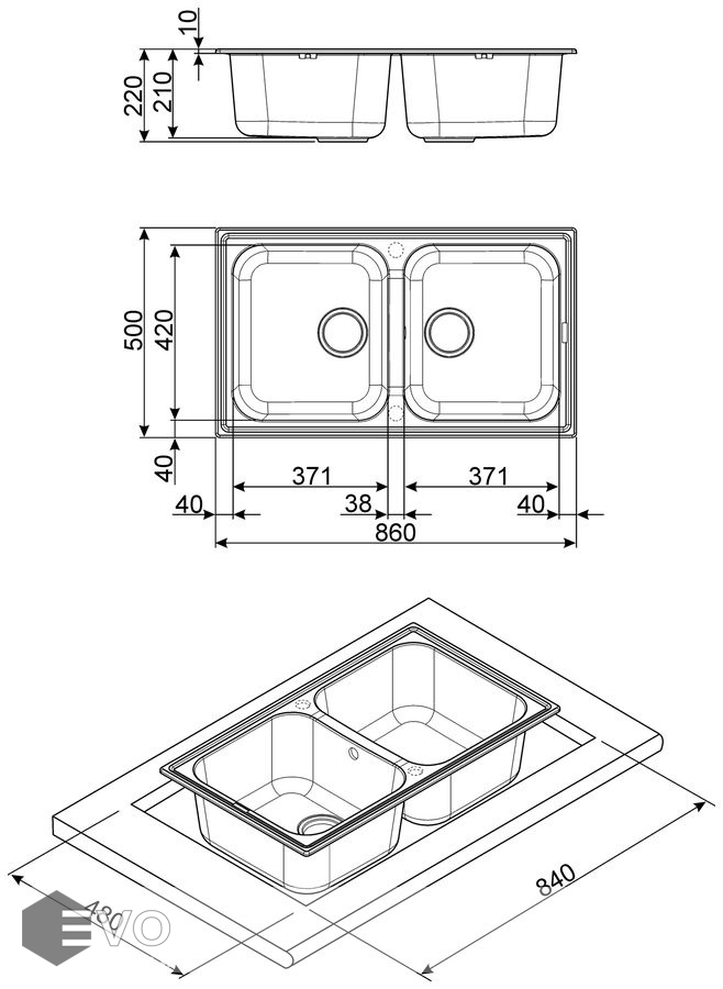 - Аксессуары для монтажа в комплекте: Корзинчатый вентиль, Сифон с возможностью подключение посудомоечной машины, Компактный сифон с возможностью подключения посудомоечной машины, Фиксирующие зажимы, Уплотнительная лента