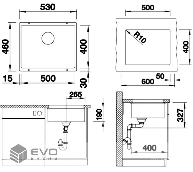 | Установка: | Интегрированная (под столешницу) |
