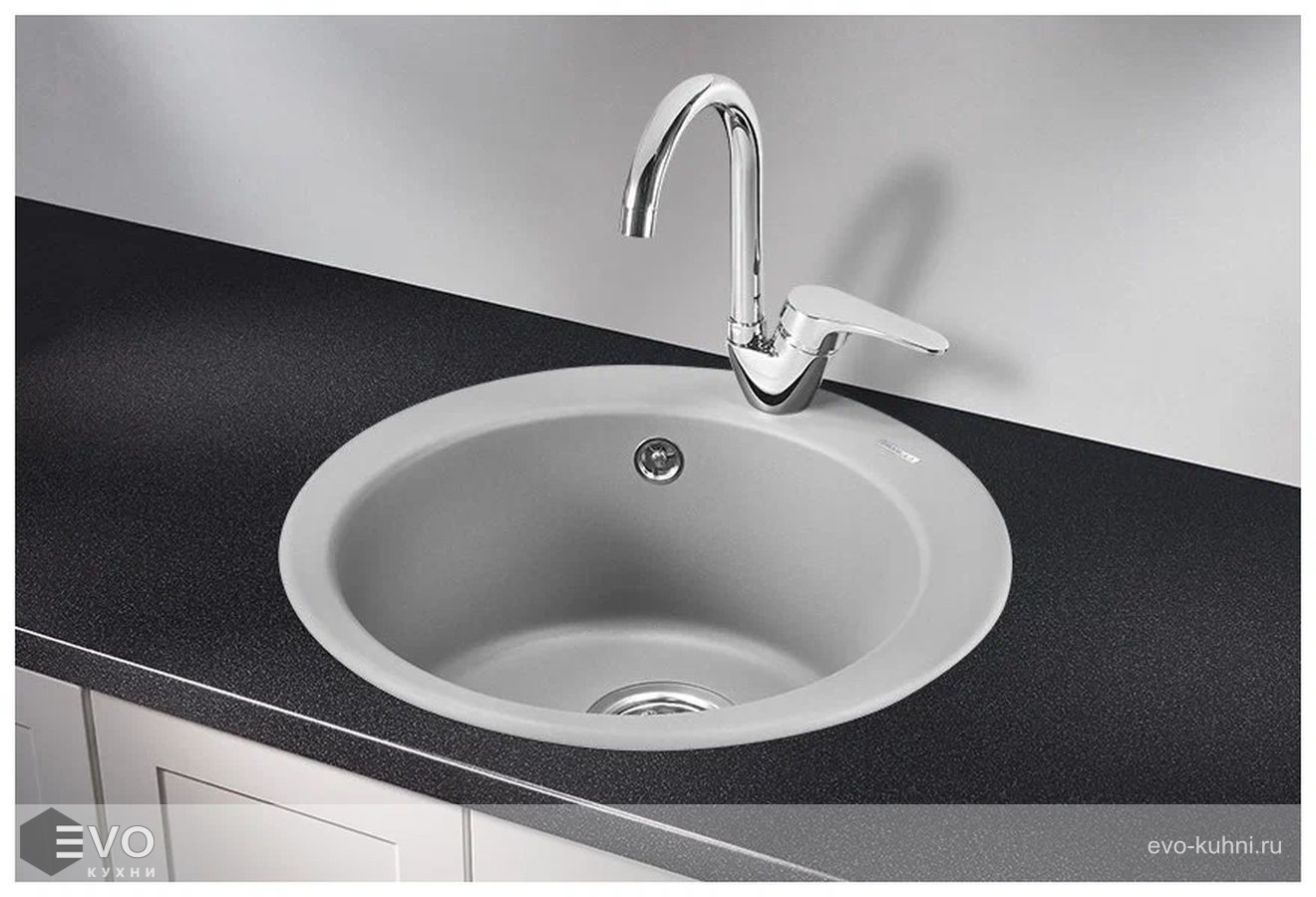 Классическая круглая мойка компактных габаритов с вместительной чашей. Закругленные линии модели упрощают уход за ней, а минималистический дизайн подойдет для кухни любых размеров.