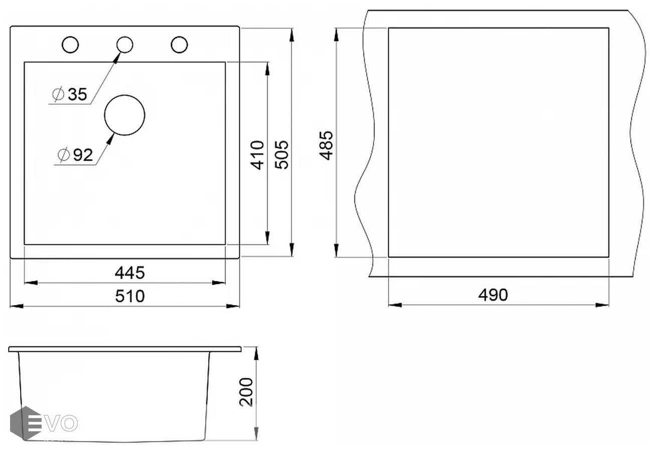 - Длина мойки 51 см