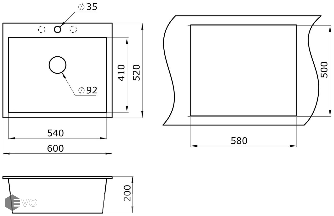 Эта односекционная кухонная мойка с большой чашей предназначена для установки в шкафы 600 мм. Габариты мойки составляют 60х52 см. При этом модель имеет самую большую чашу в линейке и очень удобна в эксплуатации, а уникальный дизайн делает изделие настоящим украшением помещения