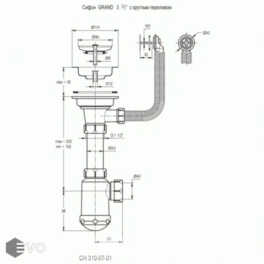 - Комплектация: сливная арматура 3 1/2" (90 мм) с переливом и сифоном; корзинчатый вентиль, инструкция