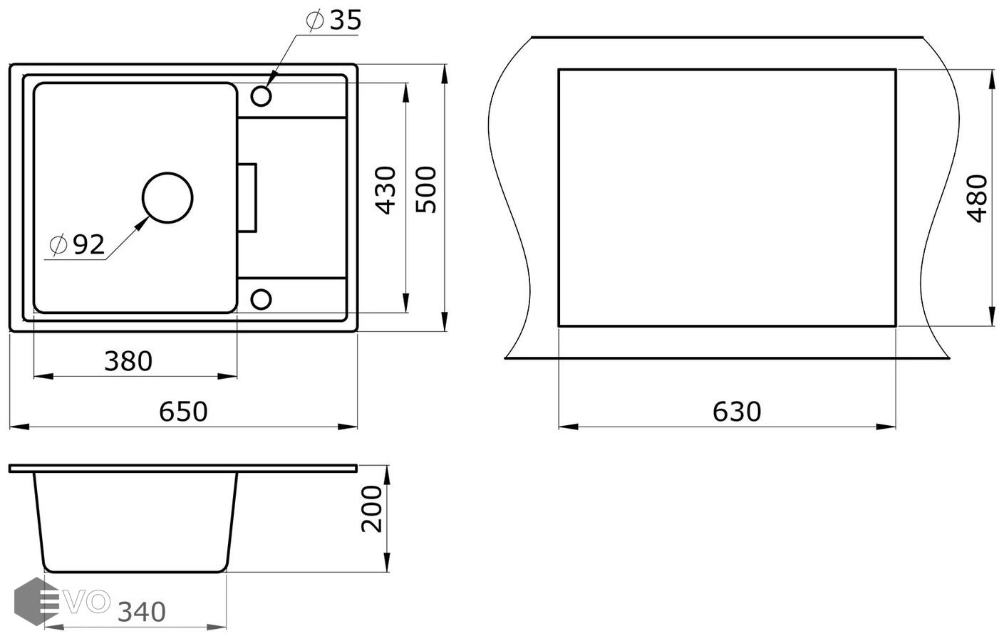 - Длина мойки 65 см