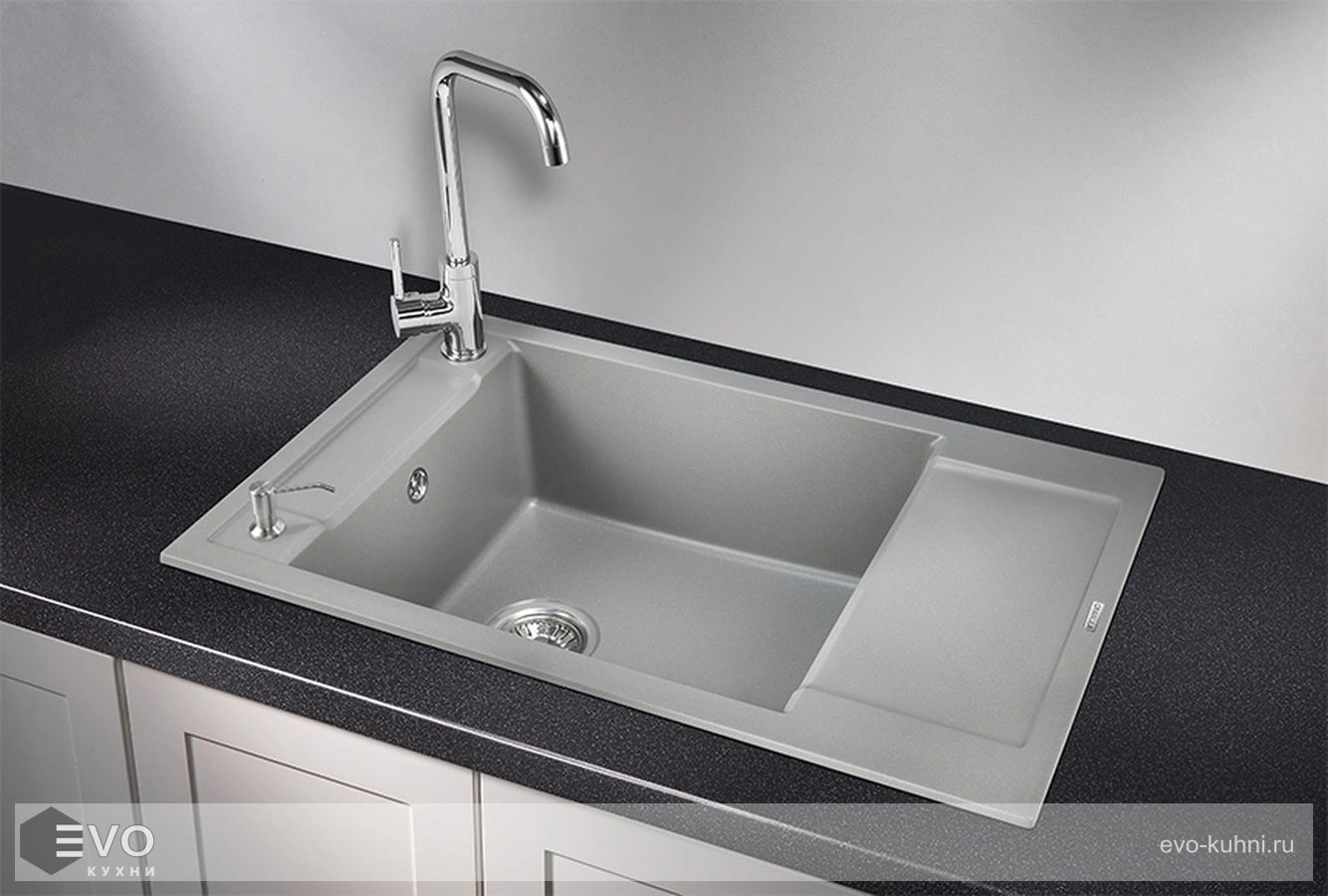 Представляем вам кухонную мойку с уникальным дизайнерским решением от российского производителя, выполненную из прочного и стильного кварца.
