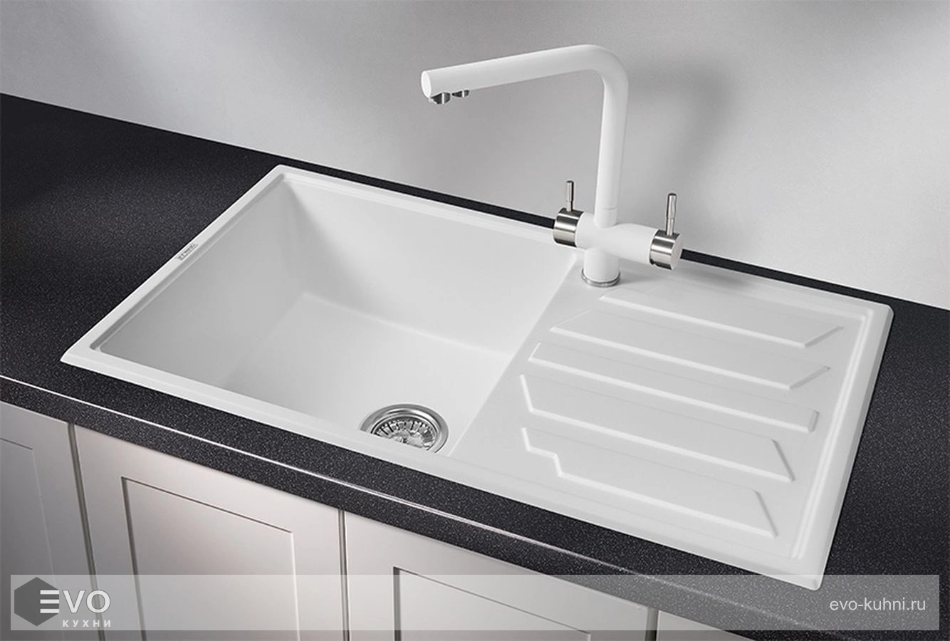 Изготовленная из кварца, эта мойка является прочным и надежным решением для вашей кухни.