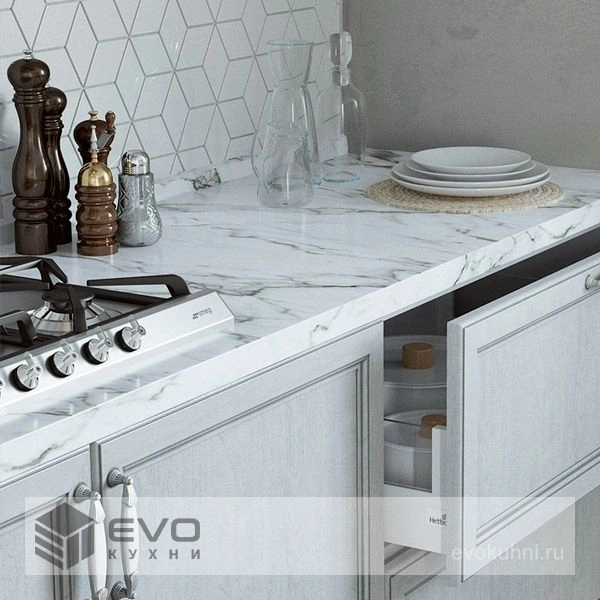 Толщина 38 и 50мм. Столешницы толщиной 38мм - влагостойкие. Вместо кромок ABS и 3D возможно изготовление накладки из массива (прямой/гнутый), а также ламели из шпона толщиной 2мм.