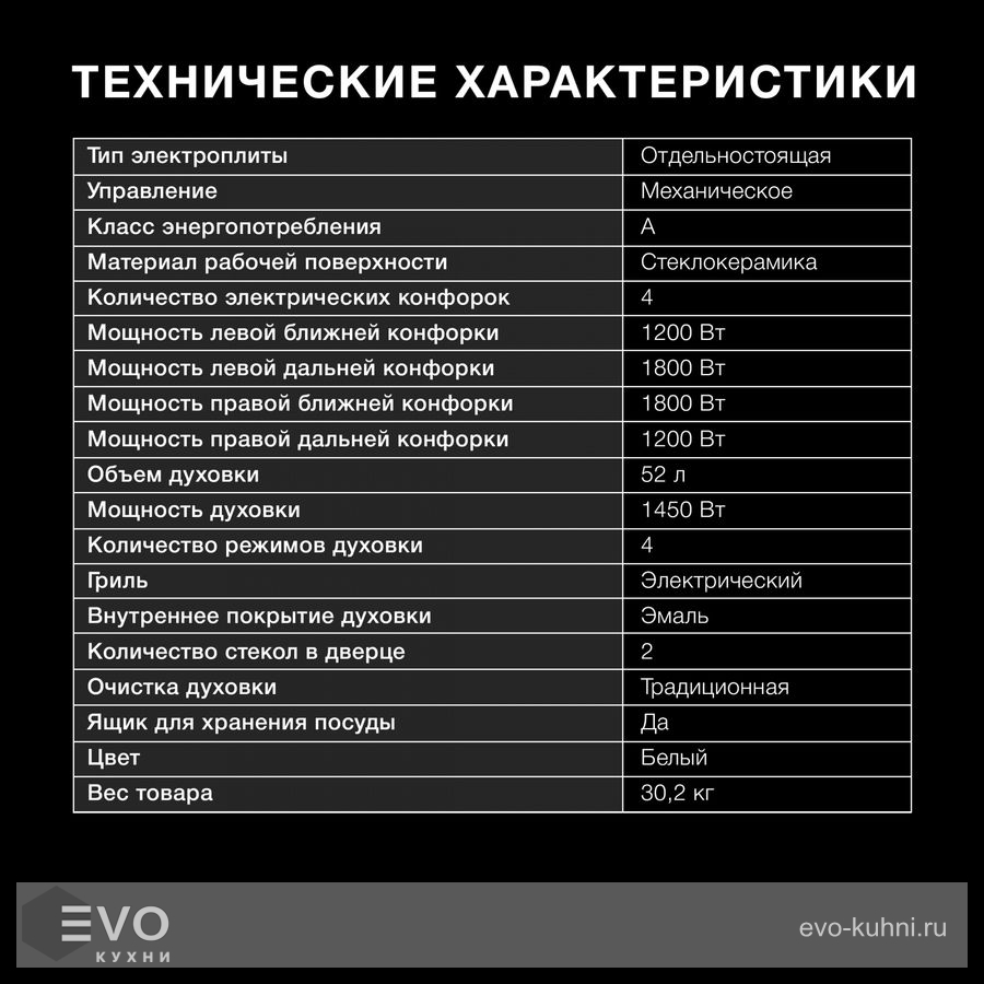 - Тип электроплиты: отдельностоящая