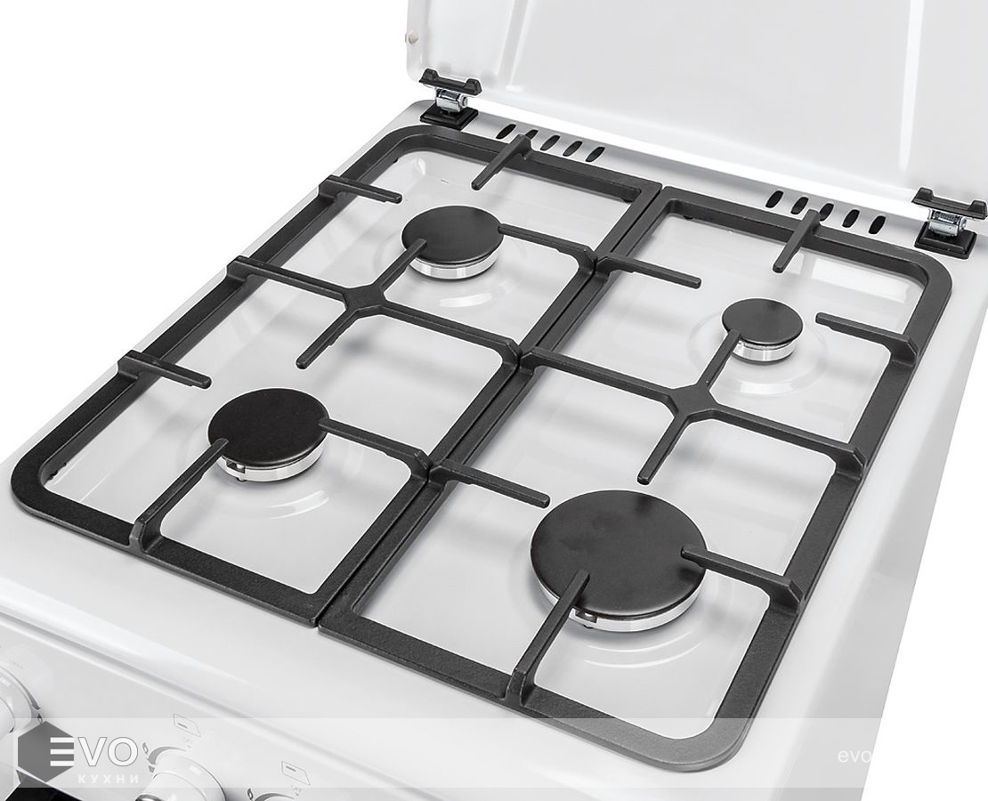 - Благодаря эстетичной чугунной решетке на плите можно оставлять кастрюли и сковородки, тем самым экономя свободное место на рабочей поверхности кухни