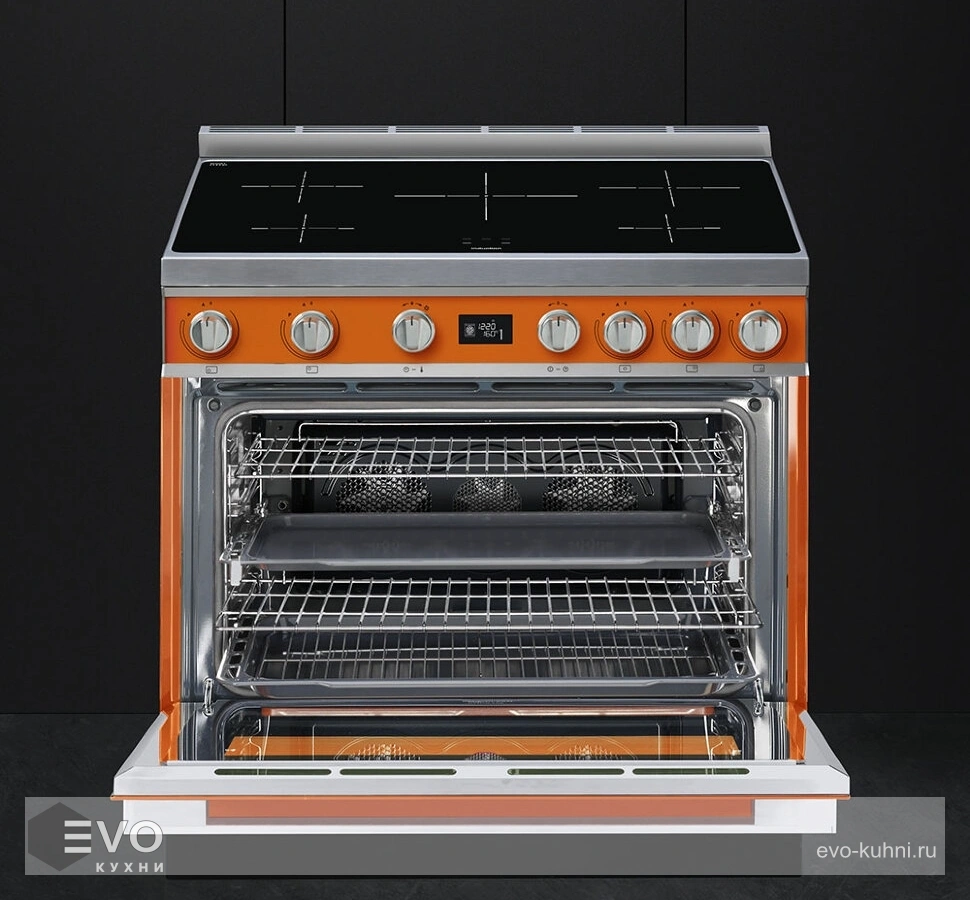 Плита не только может готовить еду, но и поможет разморозить продукты без вреда для них. А система самоочистки облегчит поддержание духовки в чистоте. За счет равномерного прогрева всей поверхности духовки владелец может готовить на 5 уровнях одновременно. Внутренняя поверхность духовки отделана эмалью легкой очистки Ever Clean.