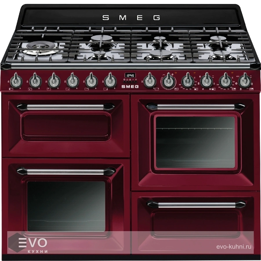 Варочный центр TR4110RW1 — центр предназначен для приготовления блюд средиземноморской кухни, различного жаркого, отбивных, колбас и бекона, а также выпечки тортов, пирогов, пиццы, хлеба, пирожных и печенья. Модель оснащена тремя духовыми шкафами и газовой варочной поверхностью с семью конфорками.