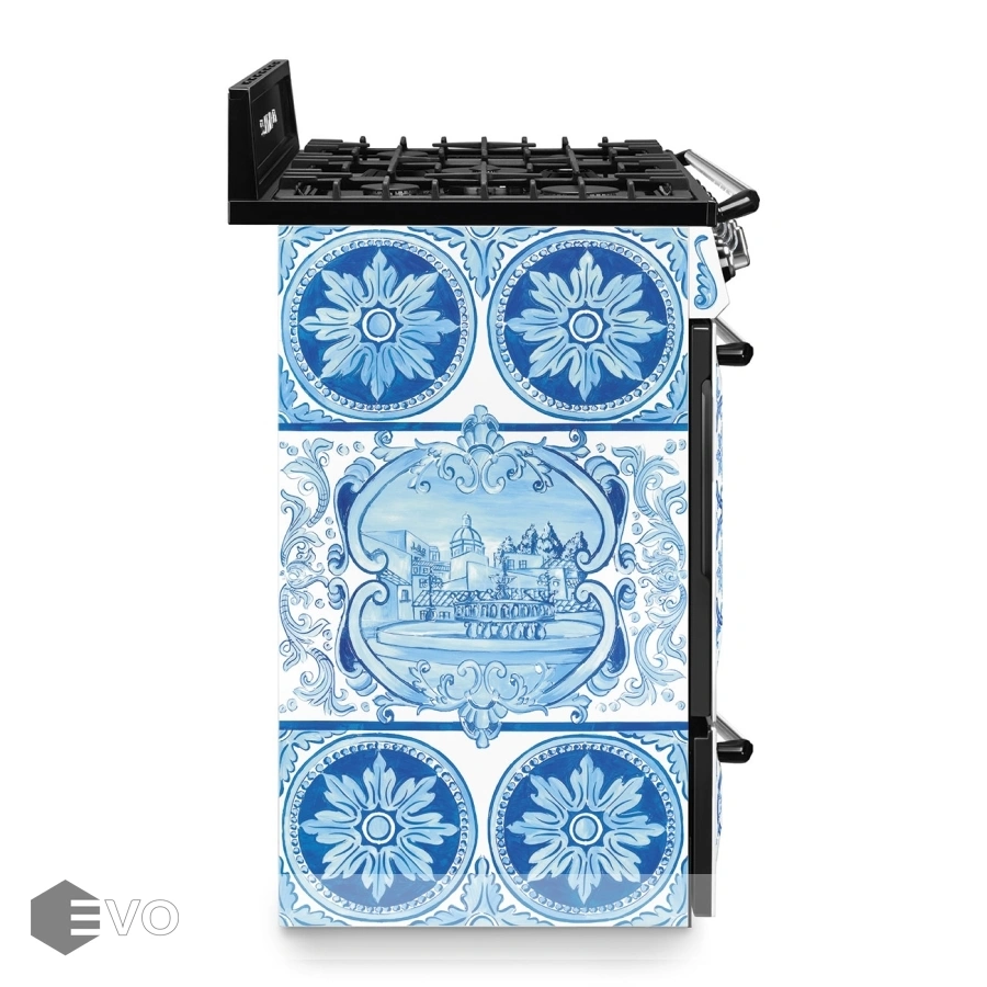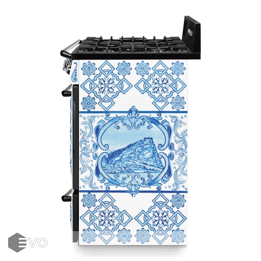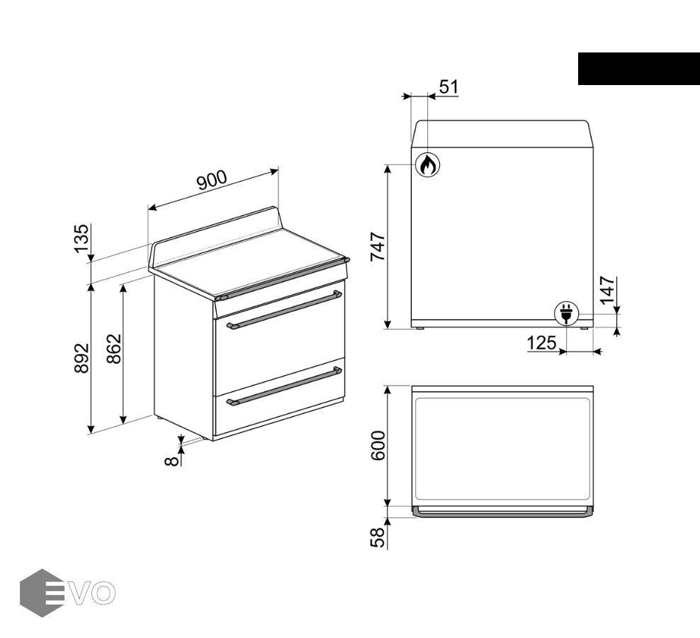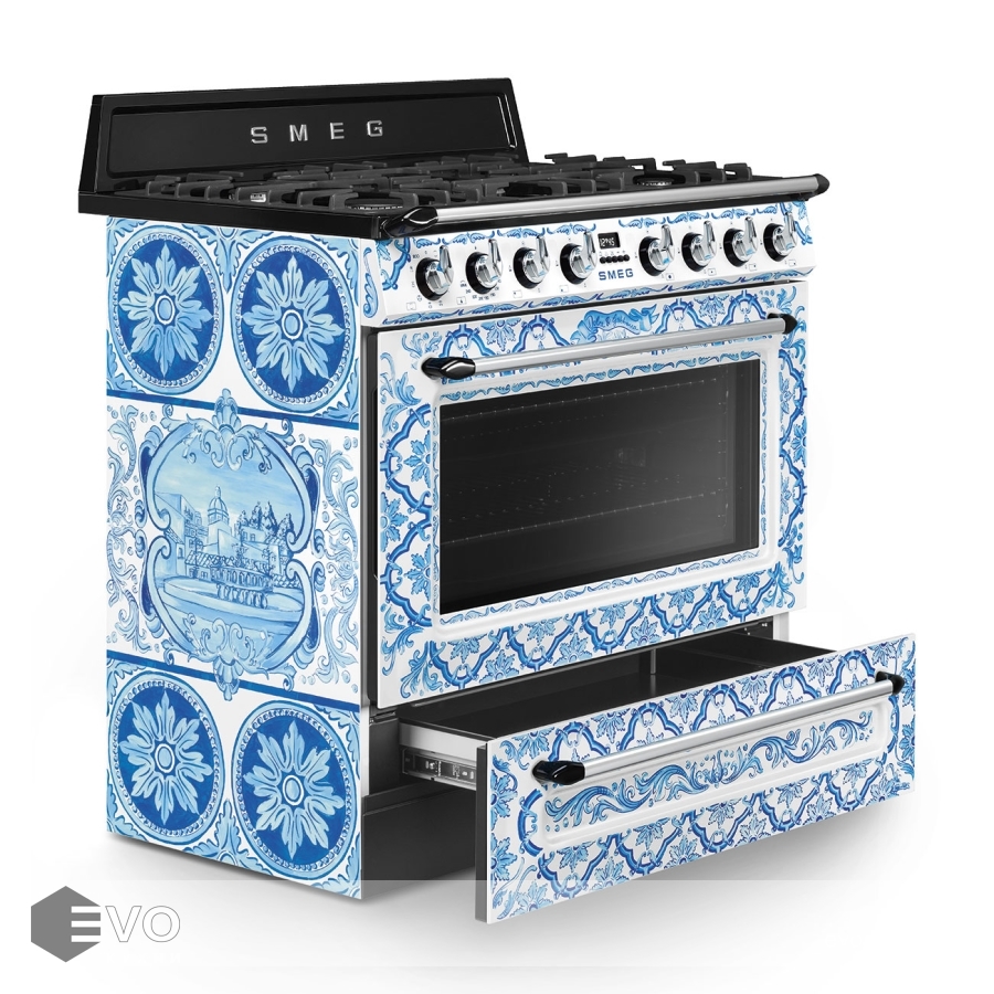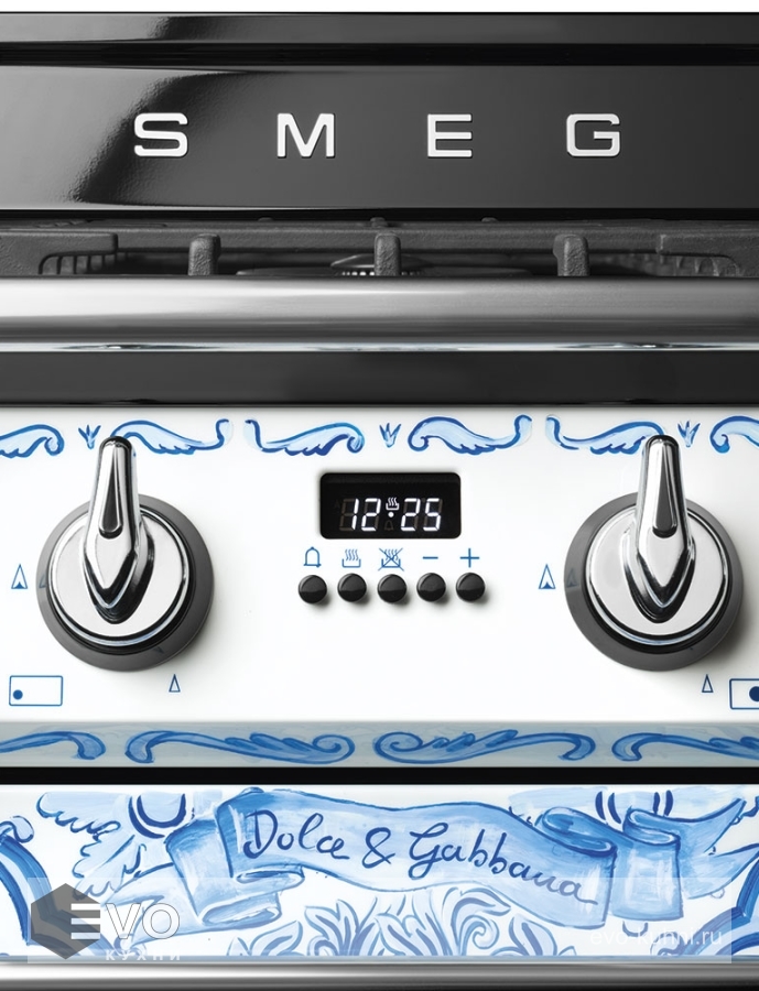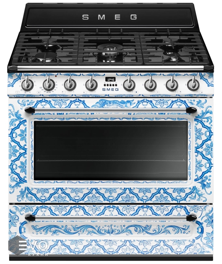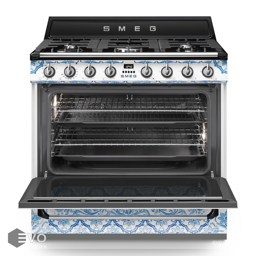 Плита кухонная Smeg TR90DGM9 – это фактически варочный центр, используемый на большой и просторной кухне. На варочной поверхности расположено 5 газовых конфорок с системой контроля затухания пламени (автоматическое выключение). Каждая конфорка включается поворотом рукоятки за счет электророзжига. Предусмотрена система плавного закрывания дверцы Soft Close.