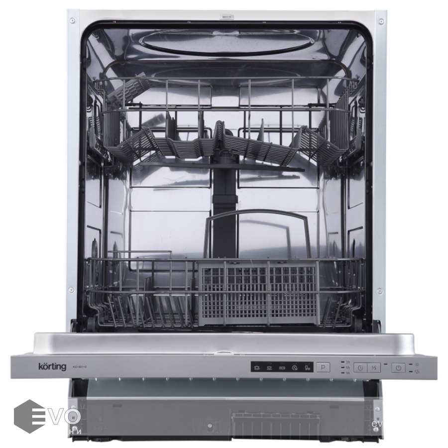Посудомоечная машина Korting KDI 60110 — полноразмерная полностью встраиваемая модель, вмещает в себя до тринадцати комплектов посуды, этого хватит для использования в большой семье или для приема гостей. Внутренний бак выполнен из наиболее популярного материала — нержавеющей стали, которая обладает высокой прочностью, поэтому служит длительное время, кроме того, она не боится коррозии, отлично подходит для устройств, использующих в своей работе воду.