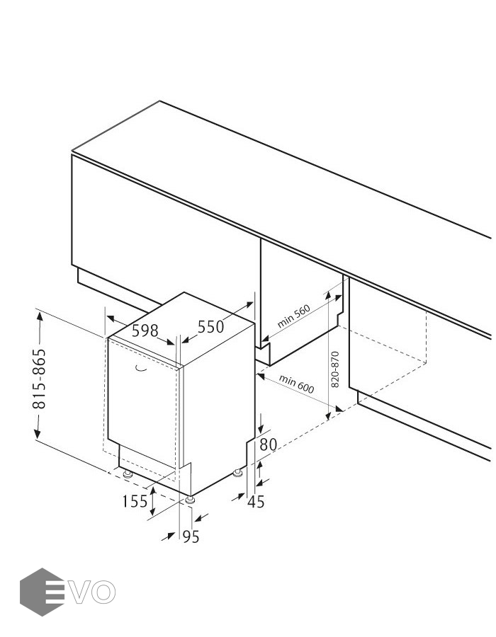• Встраиваемая часть (ВхШхГ), мм: 815-865х598х550