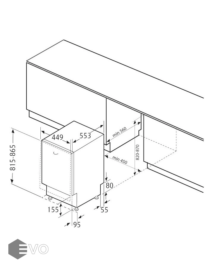 - Встраиваемая часть (ВхШхГ), мм: 815-865х449х553