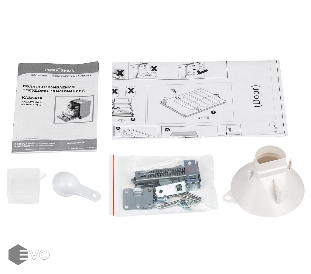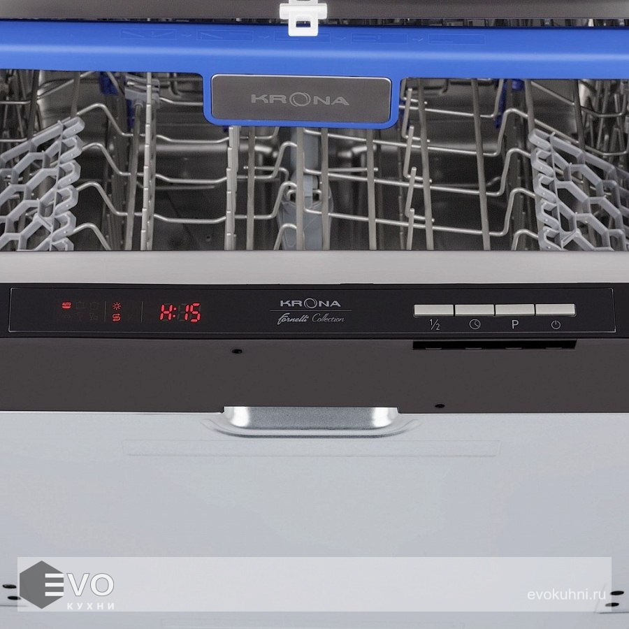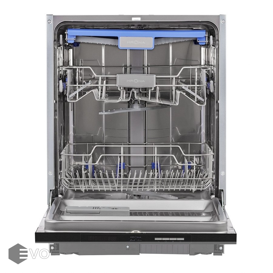Полновстраиваемая посудомоечная машина KRONA KASKATA 60 BI – посудомоечная машина KASKATA 60 BI шириной 60 см вмещает 14 комплектов посуды. Благодаря регулируемой по высоте корзине Dual Space и регулируемому верхнему лотку для столовых приборов загрузка посуды стала максимально комфортной и удобной, а программа половинной загрузки позволяет экономить воду и электроэнергию. Модель оснащена LED-подсветкой Inner Light, индикатором "луч на полу" и регулируемая по высоте верхняя корзина Dual Space.
