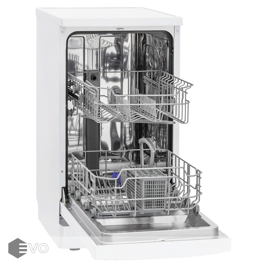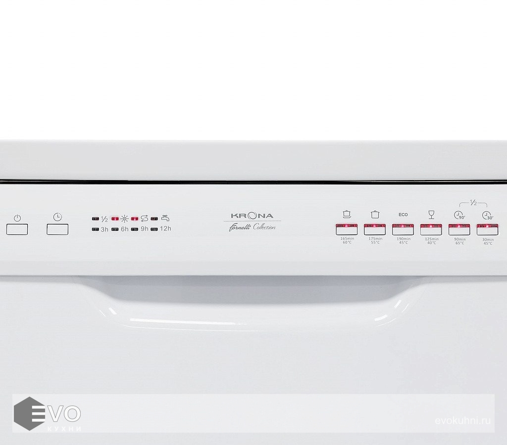 Отдельностоящая посудомоечная машина KRONA RIVA 45 FS WH – машина шириной 45 см вмещает 9 комплектов посуды. Для удобства использования в модели предусмотрен режим половинной загрузки, который позволяет экономить расход воды, таймер отложенного старта, а также возможность регулировки верхней корзины по высоте, что позволяет удобно загружать и мыть посуду разных размеров. Режим половинной загрузки и таймер 3/6/9/12 ч.