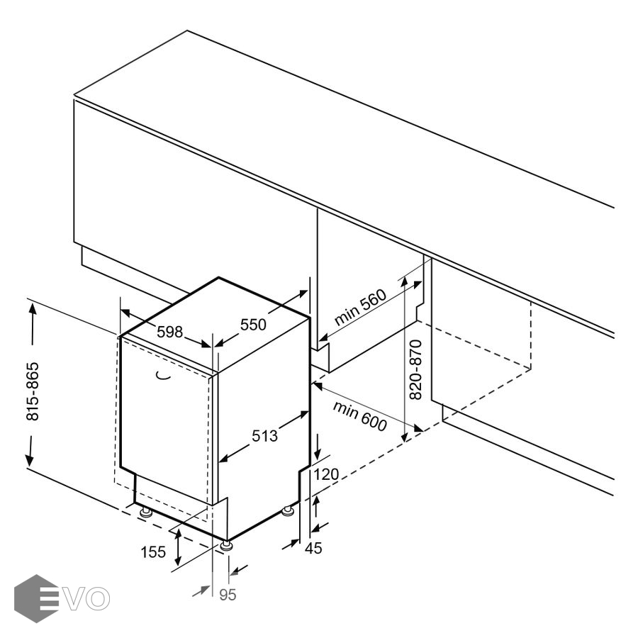 Размеры встраивания (ВхШхГ), мм: 820-870х600х560