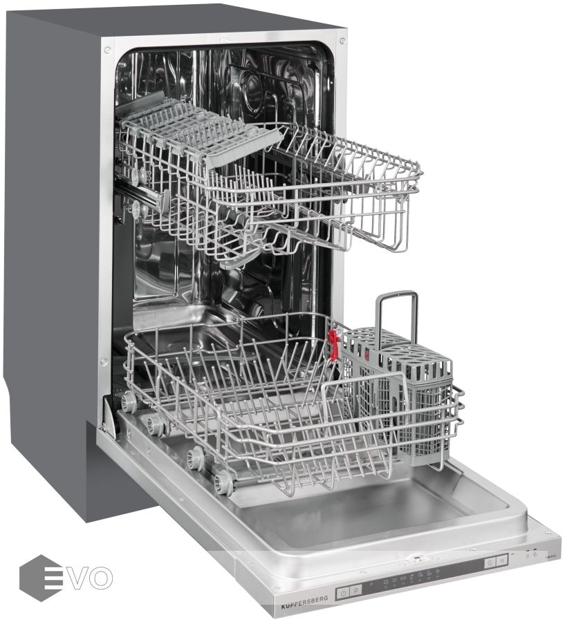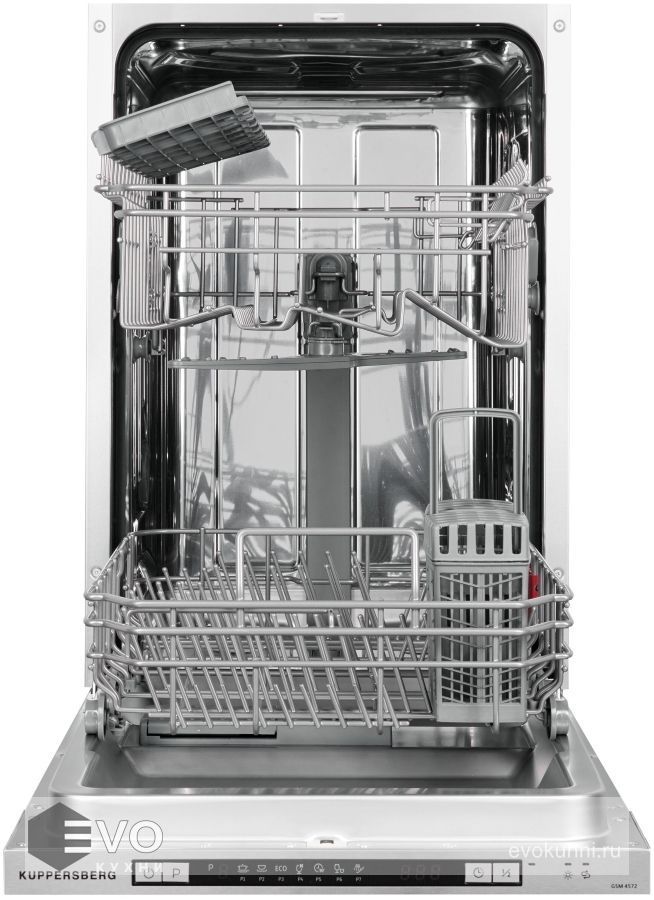 Полностью встраиваемая посудомоечная машина Kuppersberg GSM 4572 в корпусе серебристого цвета с белой панелью. Модель вмещает до 9 комплектов посуды, имеет 7 температурных режимов и 7 программ мытья. Из полезных опций доступна отсрочка старта работы, индикация соли и ополаскивателя, функция "Все в 1", а также конденсационная сушка. В средней корзине предусмотрен лифт механизм, который позволяет регулировать высоту расположения корзины. Вы сможете более оптимально распределить посуду в пространстве корзины.
