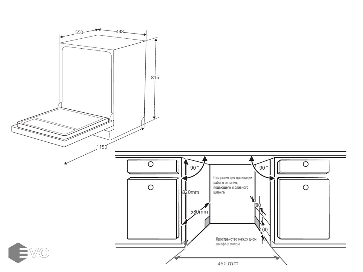 - Размер ниши для встраивания (ВхШхГ), мм: 820×450×550