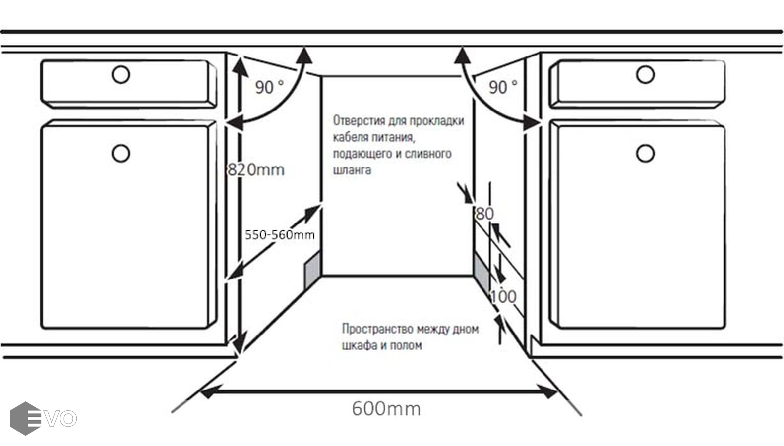 Размеры встраивания (ВхШхГ), мм: 820х600х550