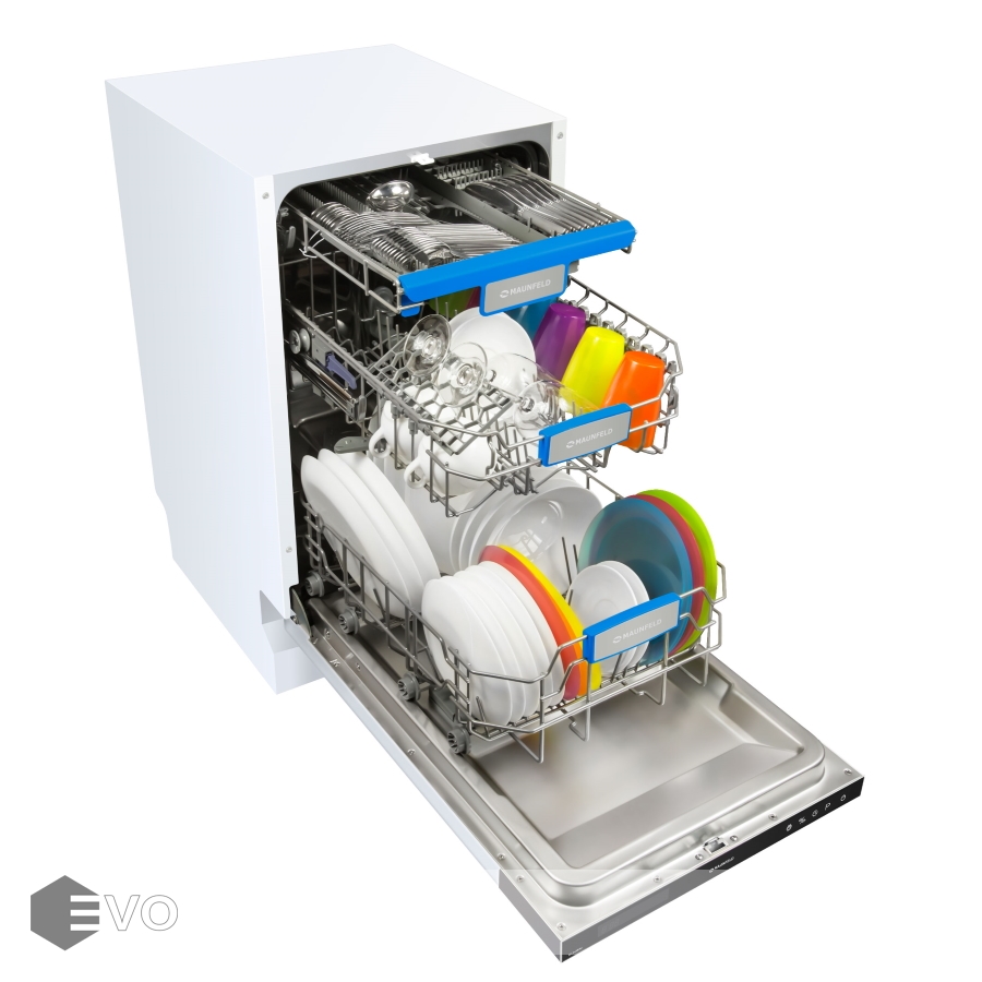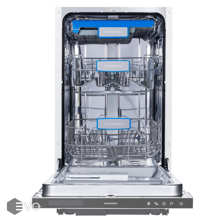 Посудомоечная машина MAUNFELD MLP-08IM – встраиваемая посудомоечная машина шириной 45 см. Благодаря использованию специальных корзин позволяет вымыть 10 комплектов посуды. Внутренняя поверхность выполнена из нержавеющей стали толщиной 0.6-0.8 мм, что обеспечит долгий срок службы при активном использовании.