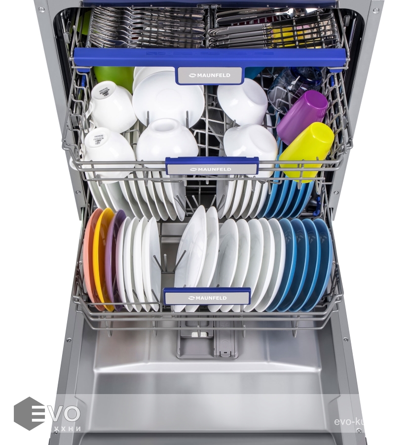 Посудомоечная машина MAUNFELD MLP-12PRO – полноразмерная встраиваемая посудомоечная машина (до 14 комплектов) шириной 60 см. Благодаря использованию специально разработанных корзин и дополнительного выдвижного лотка для столовых приборов позволяет вымыть 14 комплектов посуды. Внутренняя поверхность выполнена из нержавеющей стали толщиной 0.6-0.8 мм, что обеспечит долгий срок службы при активном использовании.