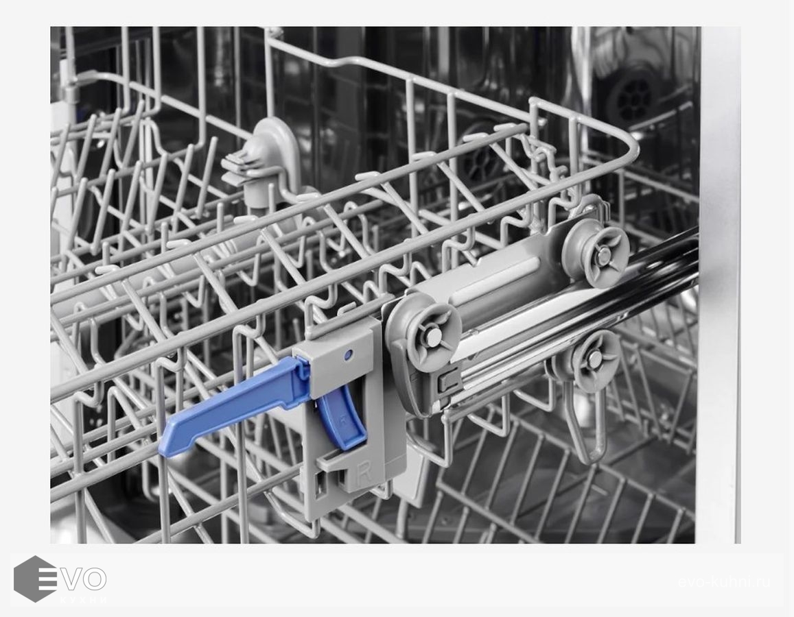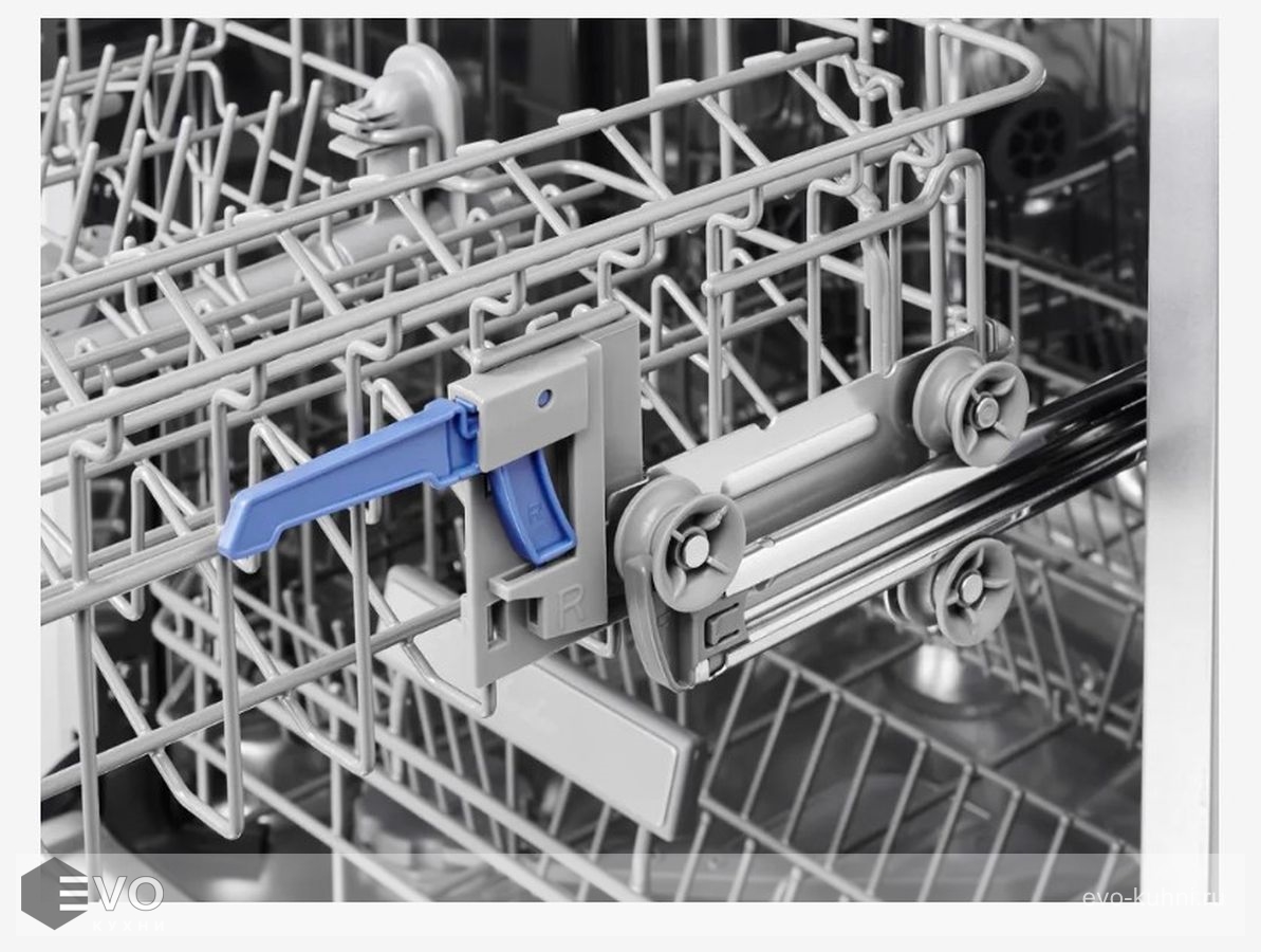 Одна из корзин является разборной. Это позволит более рационально распределить набор грязной посуды внутри камеры посудомоечной машины для достижения максимально эффективного результата мытья.