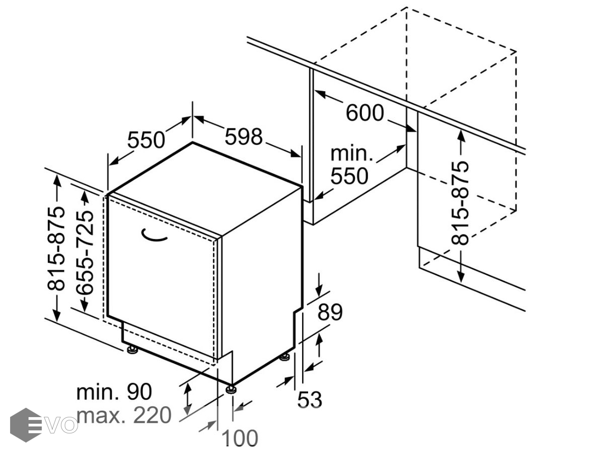 Размеры встраивания (ВхШхГ), мм: | 815-875х600х550 |
