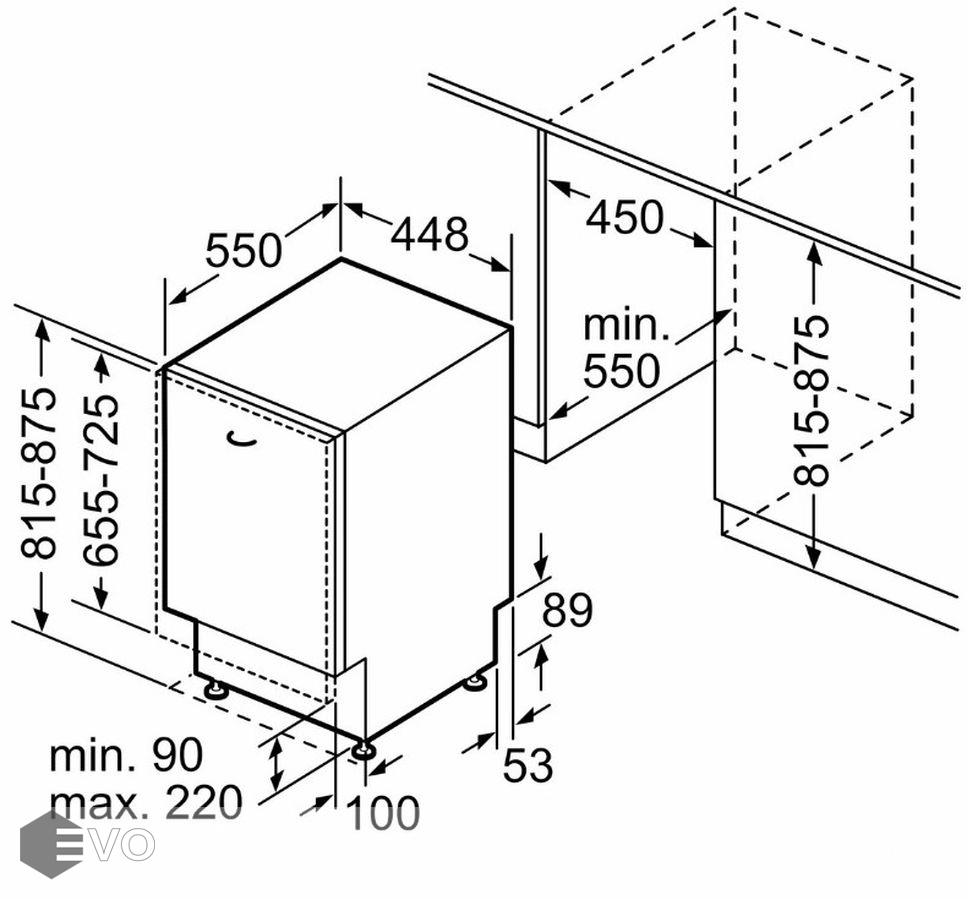 Размеры встраивания (ВхШхГ), мм: 815-875х450х550