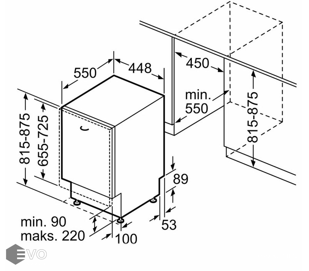 Размеры встраивания (ВхШхГ), мм: | 815-875х450х550 |