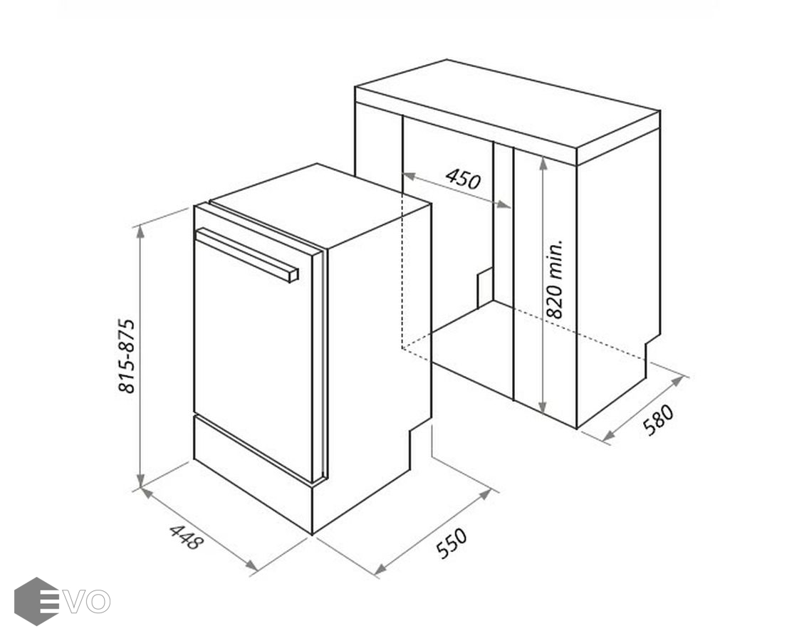Размеры встраивания (ВхШхГ), мм: | 820х450х580 |