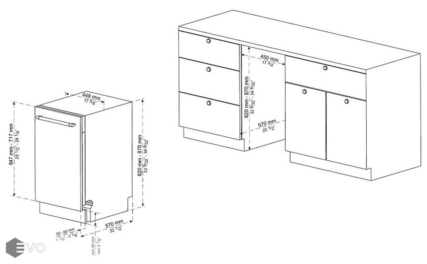 Размеры встраивания (ВхШхГ), мм: 820-870x450х570