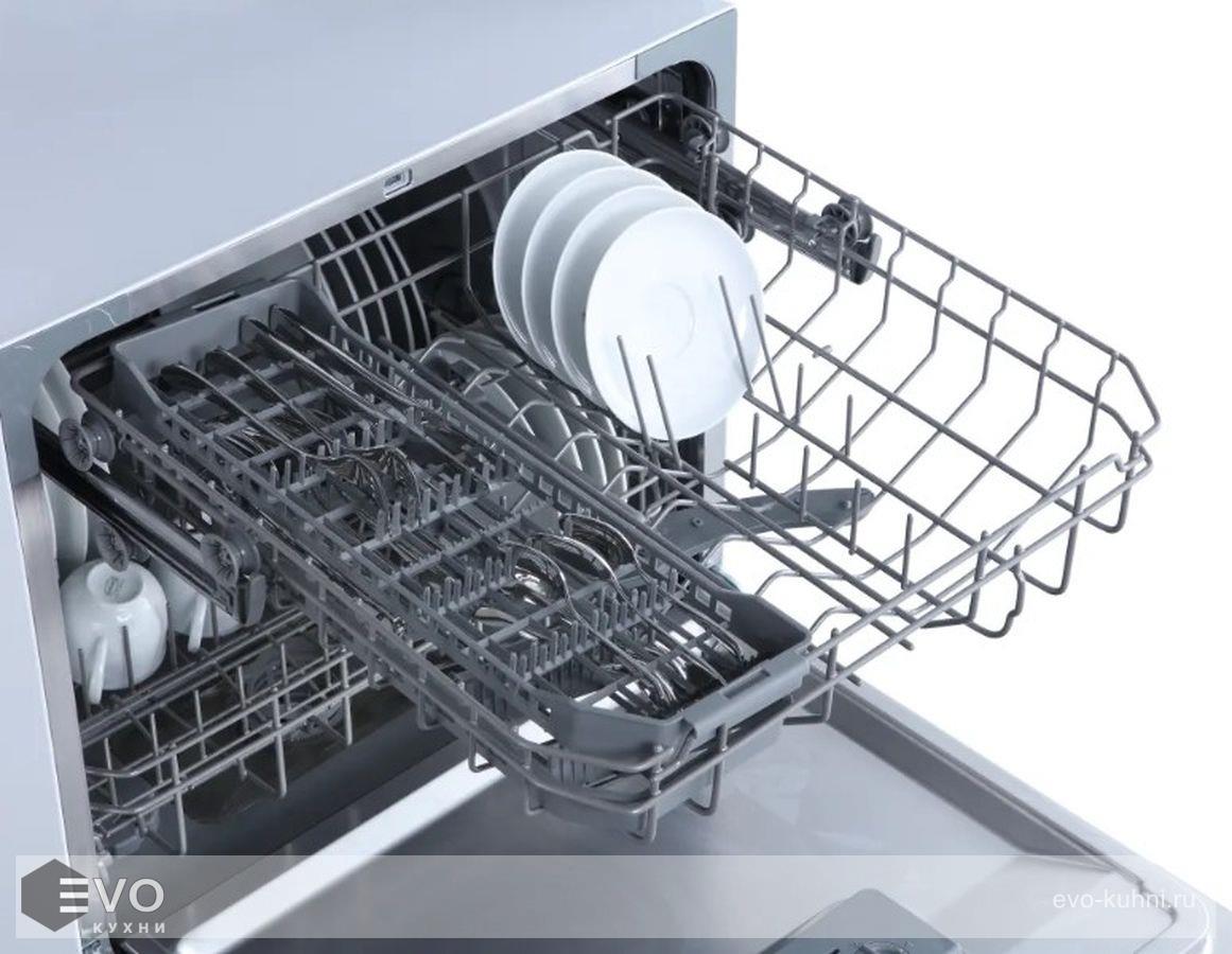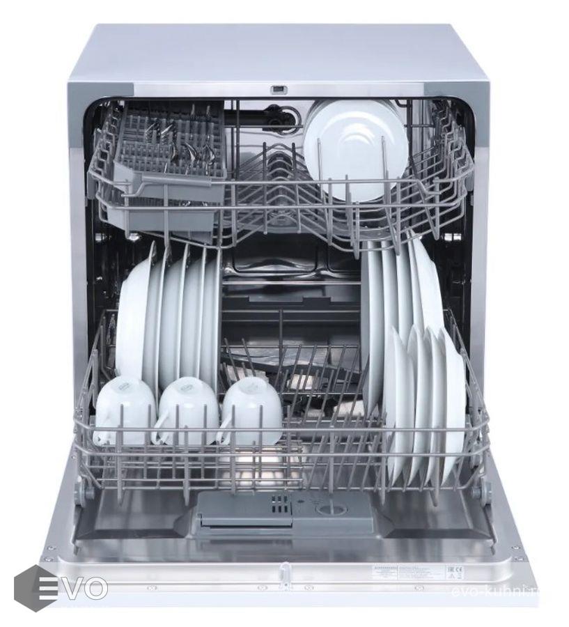 GFM 5572 W — настольная модель, выполненная в белом цвете. Прибор имеет загрузку в 8 комплектов посуды, чего будет достаточно для обслуживания 4-5 человек. Устройство оснащено двумя корзинами, верхняя — регулируется по высоте, имеется съемный лоток для столовых приборов. Посудомойка имеет частичную защиту от протечек и класс энергоэффективности А+.