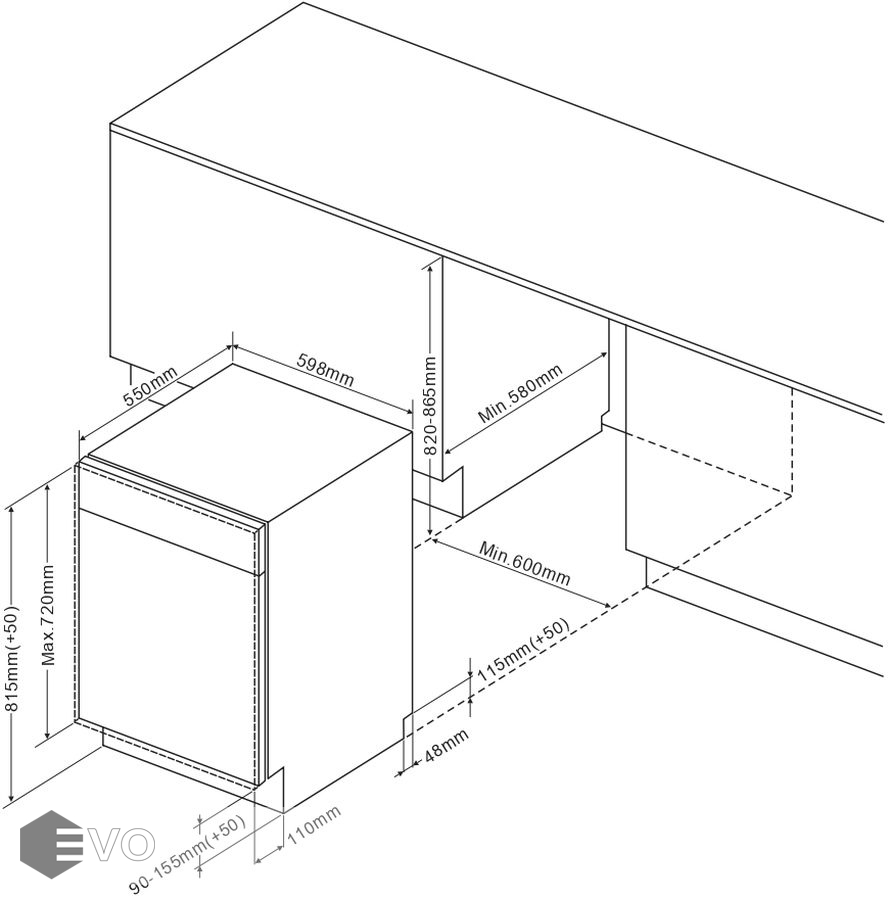 Размеры встраивания (ВхШхГ), мм: 865х600х580 мм