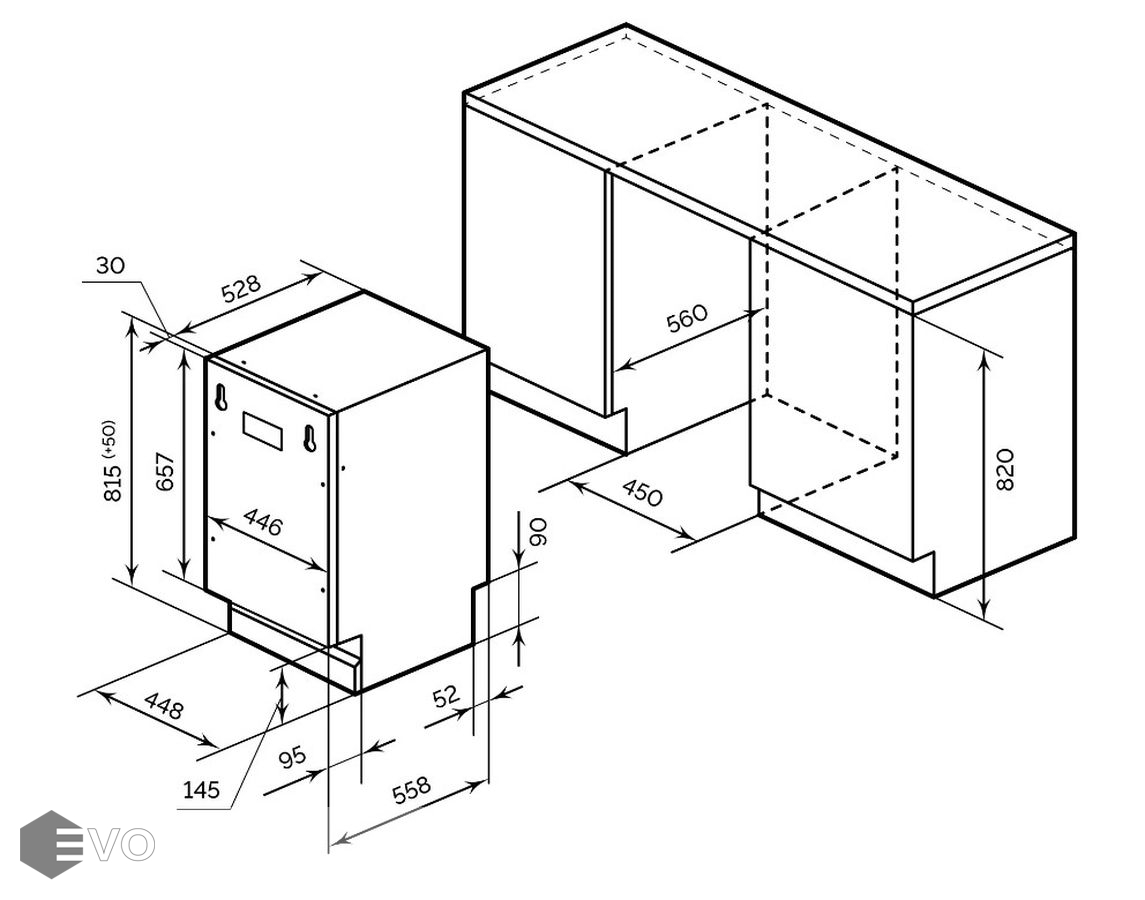 Размеры встраивания (ВхШхГ), мм: 820х450х560